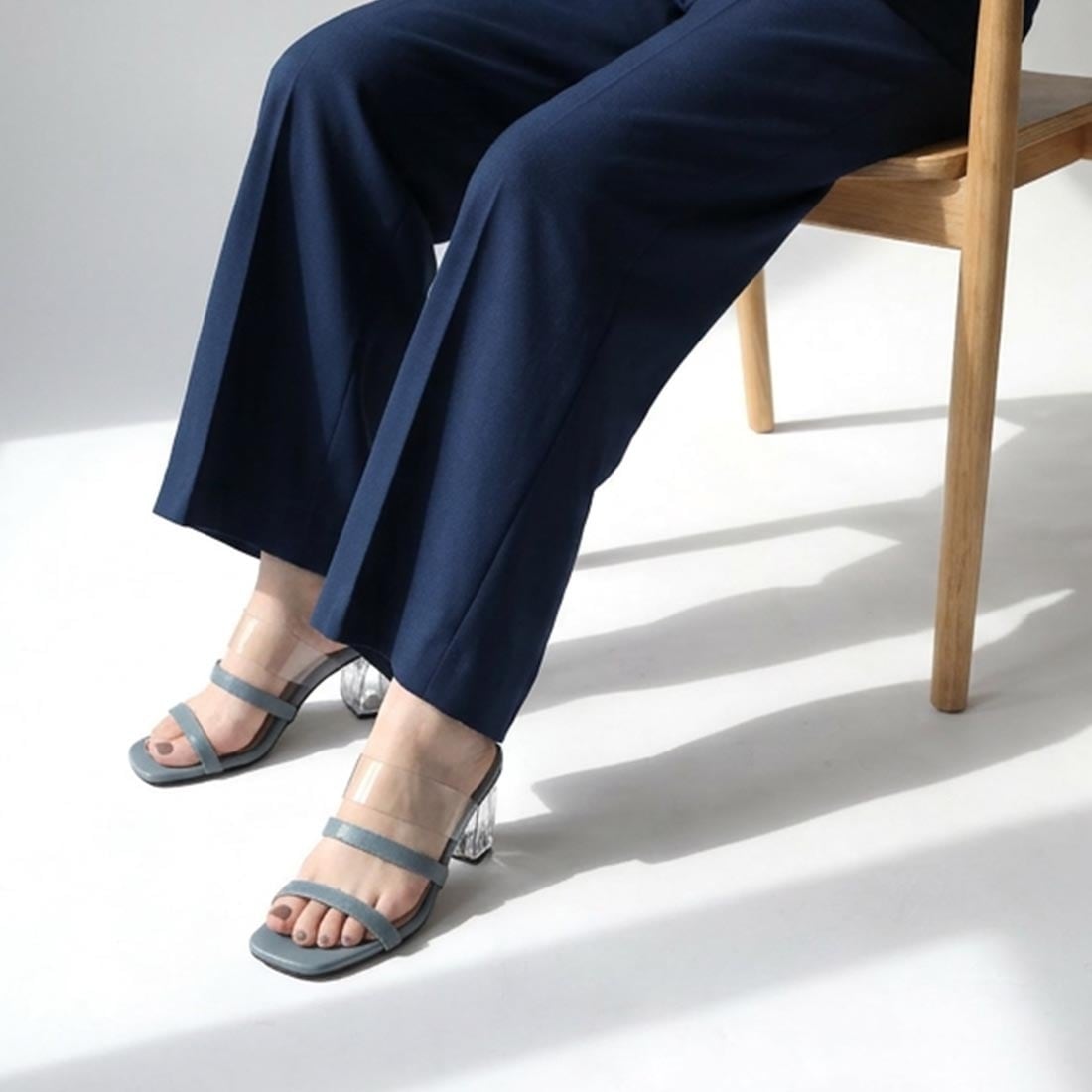 多角形のクリアヒールが抜け感たっぷりで夏らしいアイテム。
