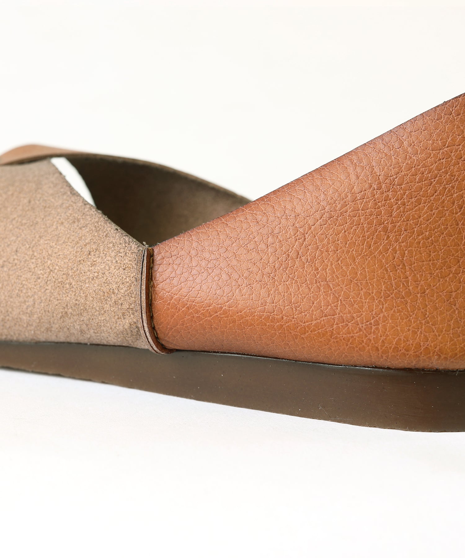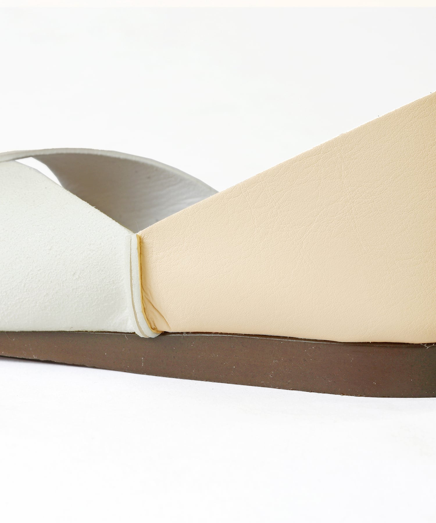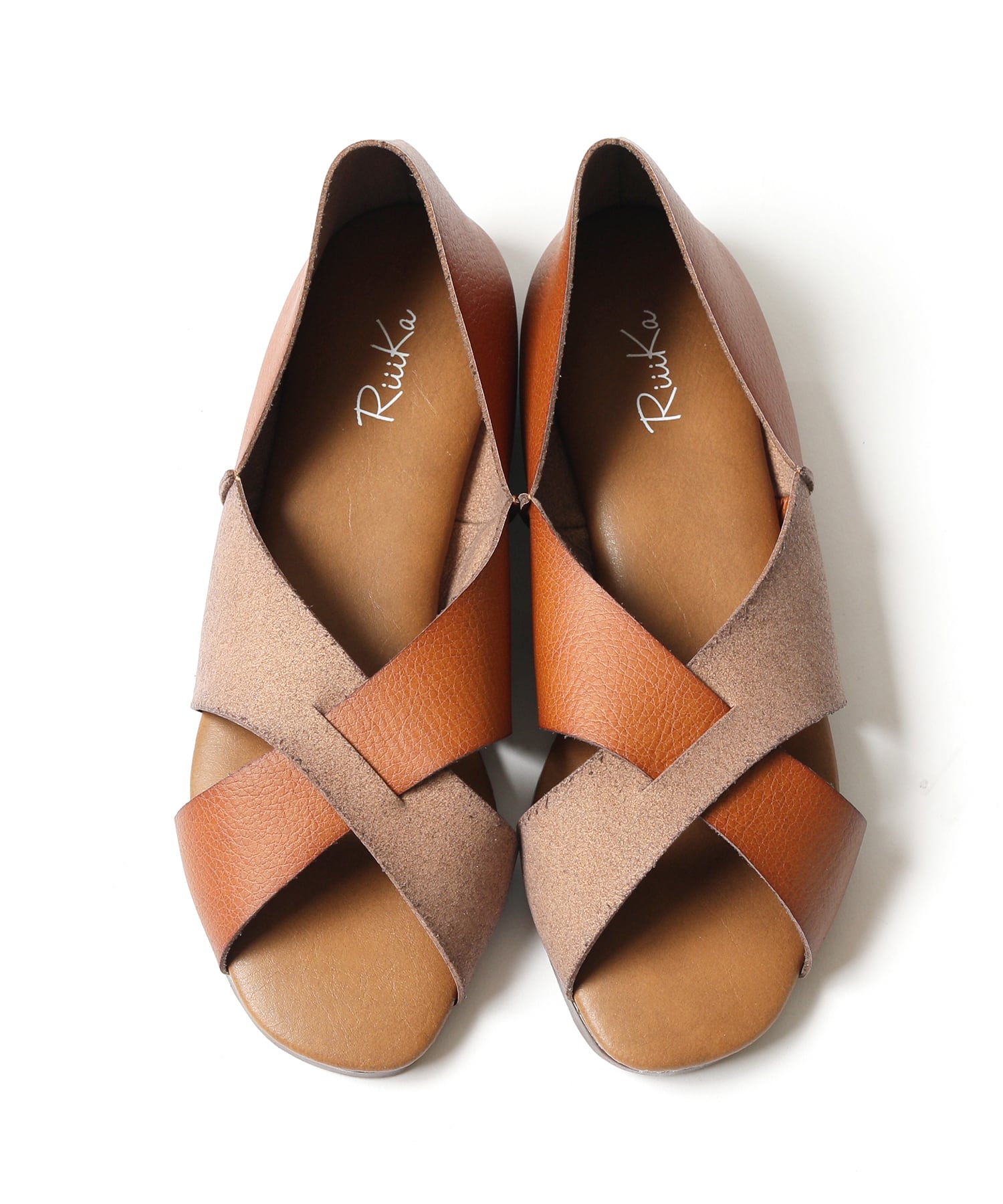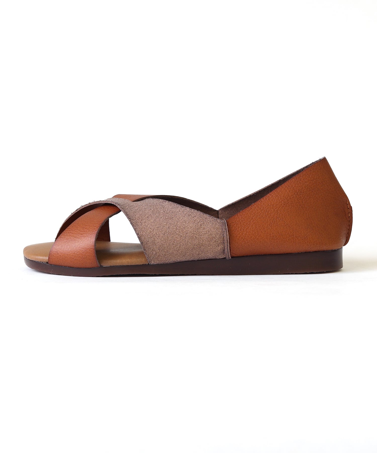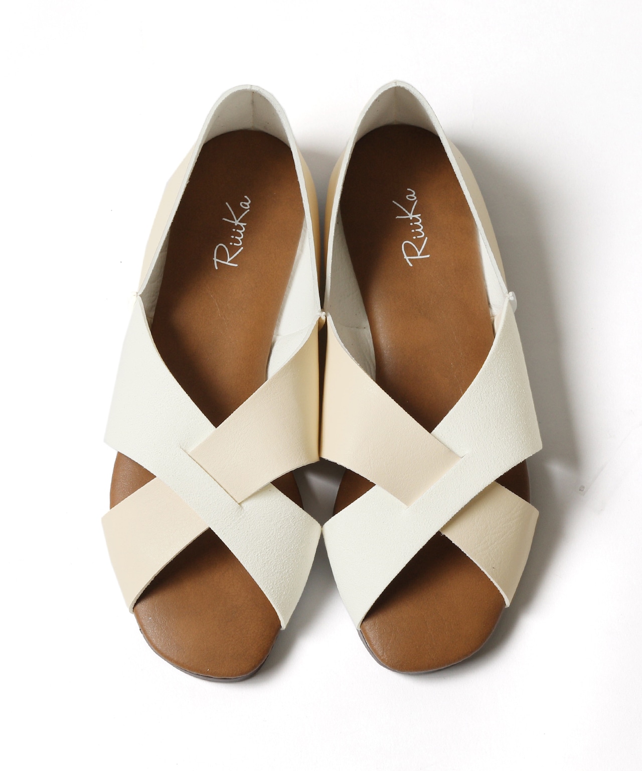 オープントゥのクロスデザインが涼しげな印象。真夏にも履いていただけるフラットサンダルです。