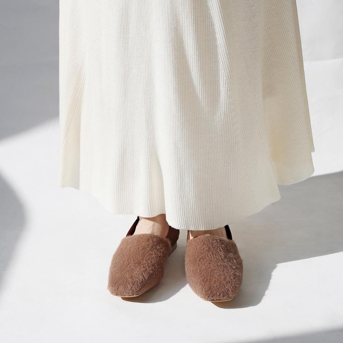 大人ナチュラルな雰囲気にぴったりのスクエアトゥスリッポン。