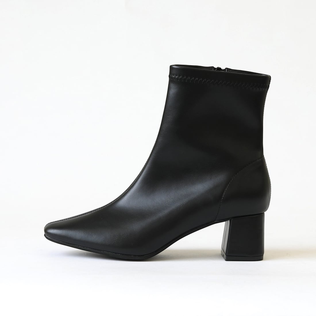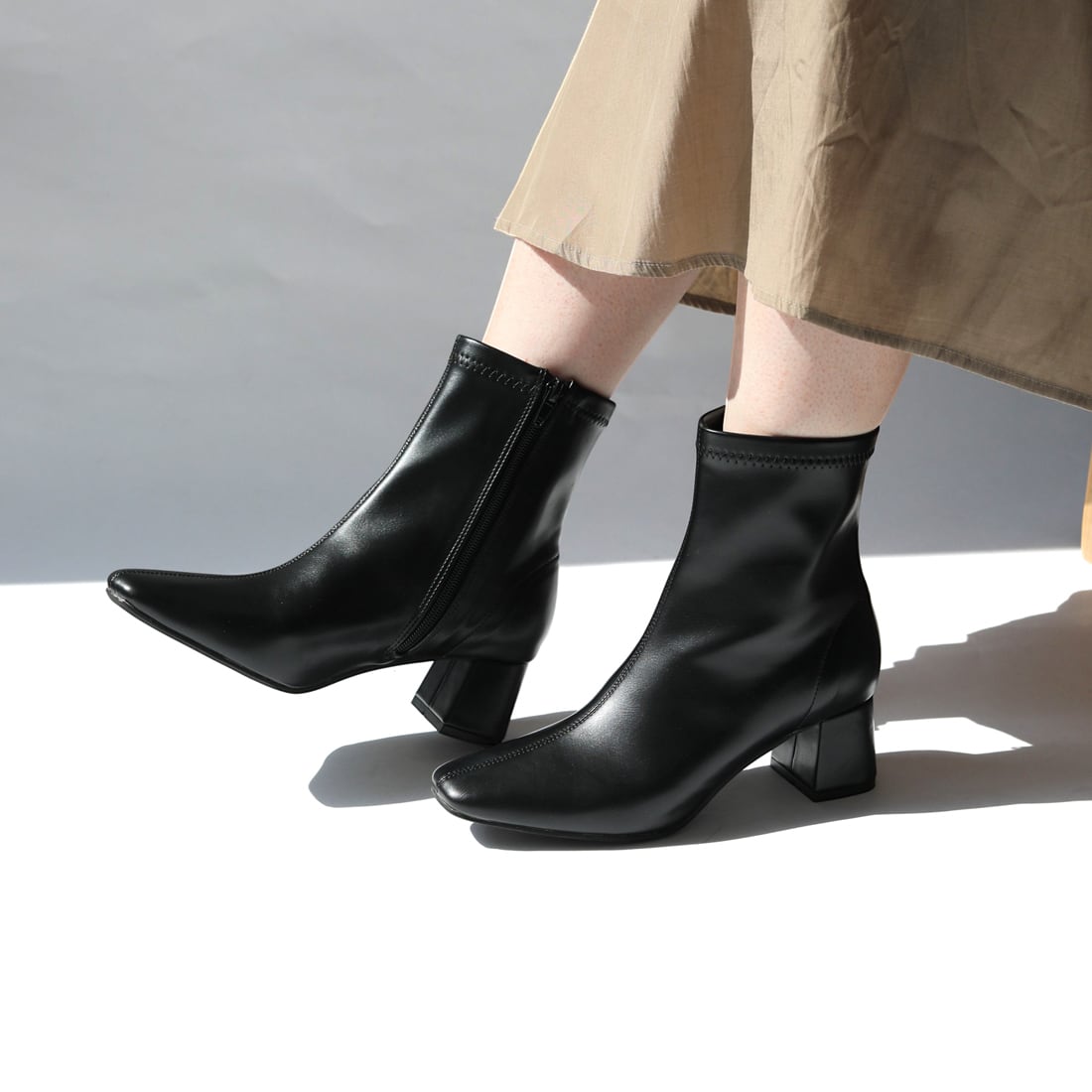 ストレッチ素材で足首にやさしくフィットする、美シルエットのショートブーツ。