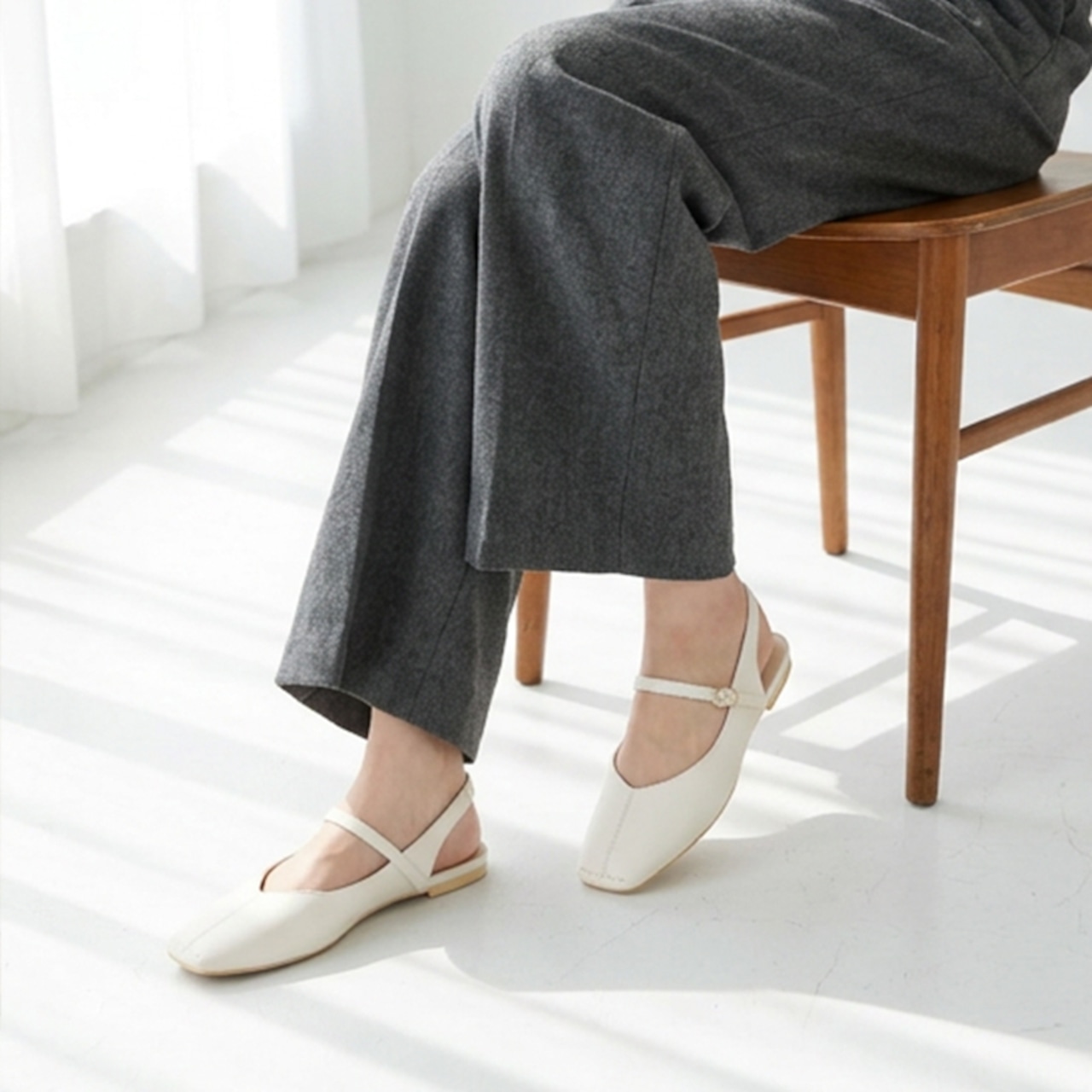 スクエアトゥバックバンドパンプス